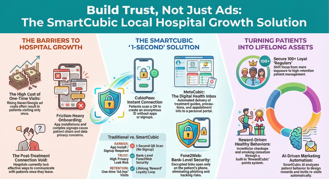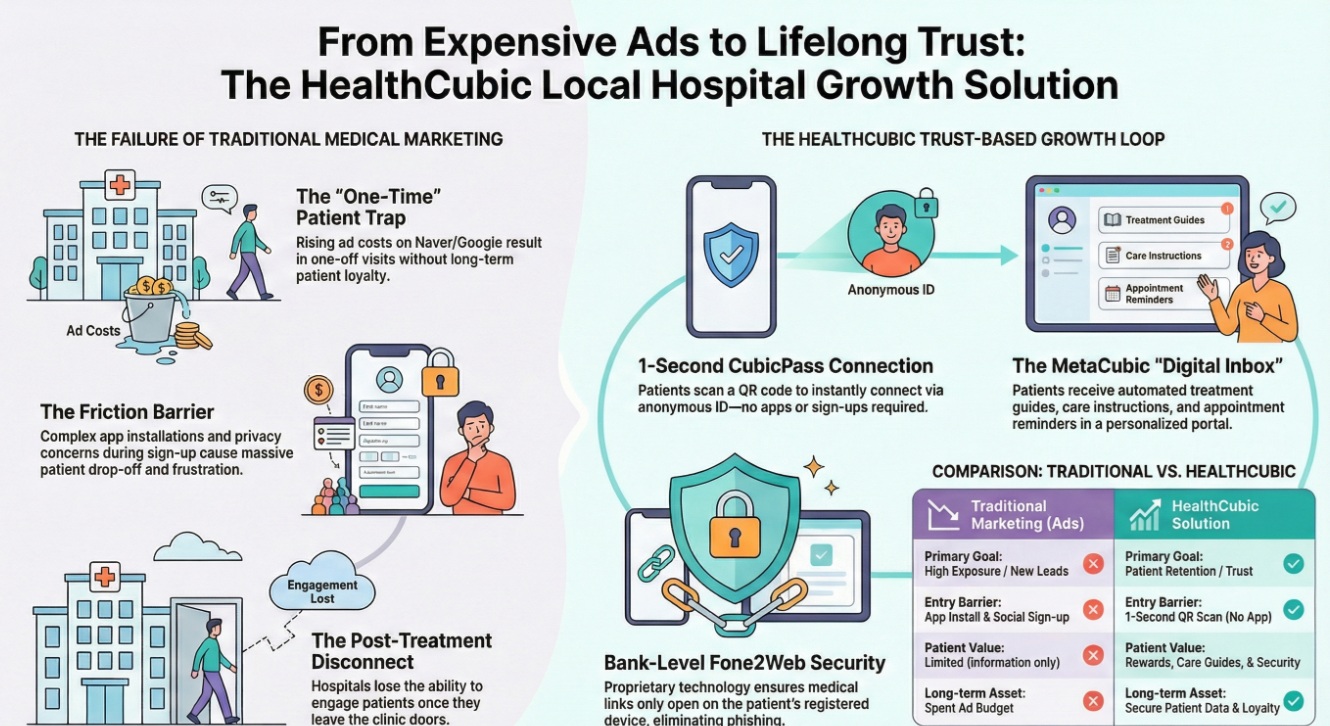 PPC costs on Google and Naver keep climbing, but patients often visit 'only once' after seeing an ad.